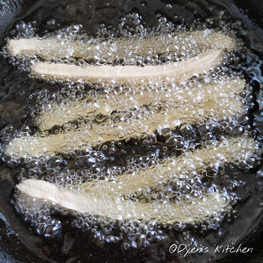Une fois l’huile bien chaude, plongez vos churros délicatement et laissez dorer.