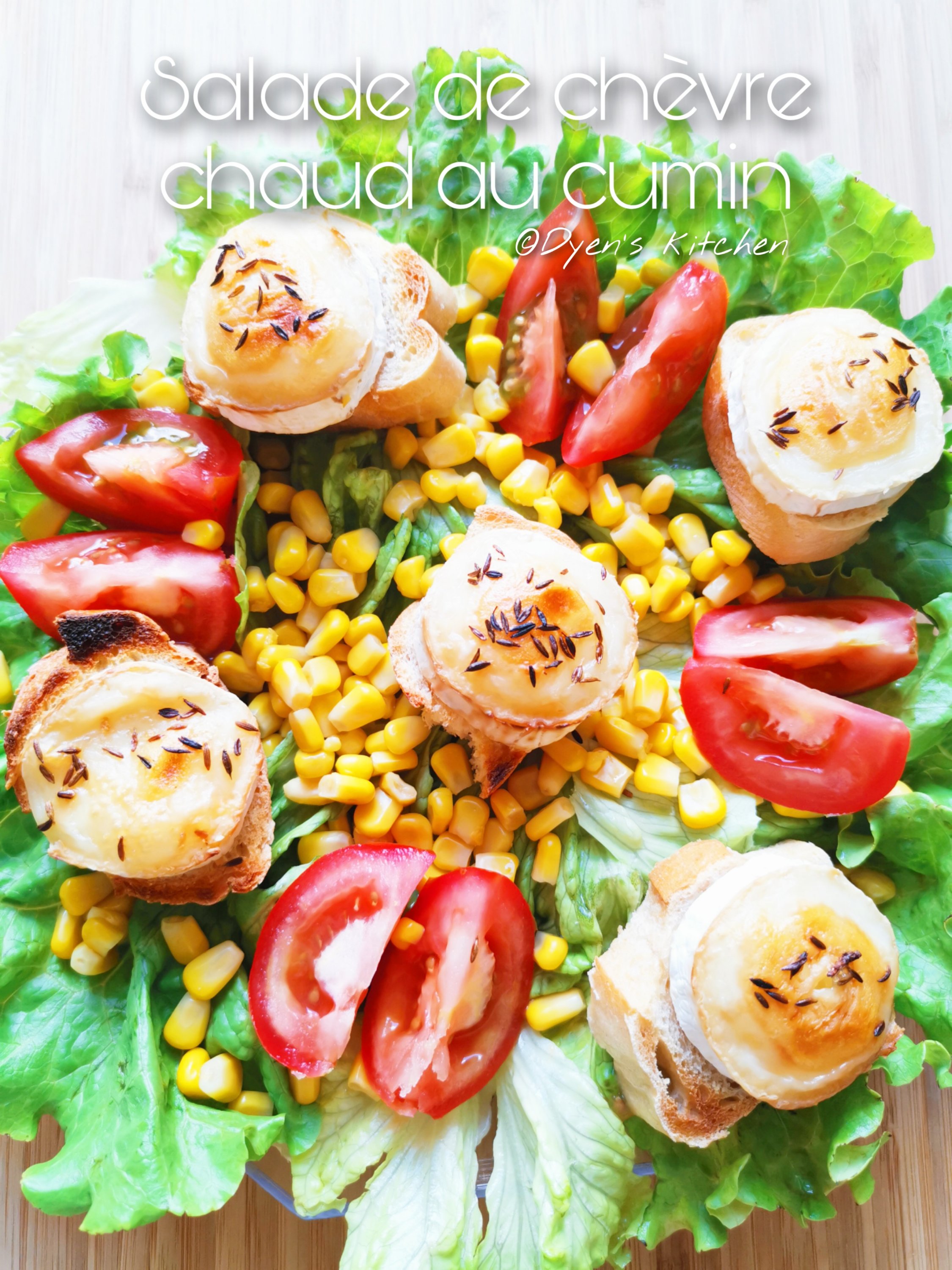 Hello Kitchen Lovers, enfin le week-end, quoique pendant les vacances scolaires, tout les jours se ressemblent. Ce midi on se prépare une salade de chèvre chaud au cumin. Les enfants sont fans du fromage grillé et avec cette présentation ils vont finir leurs assiettes dans chipoter.