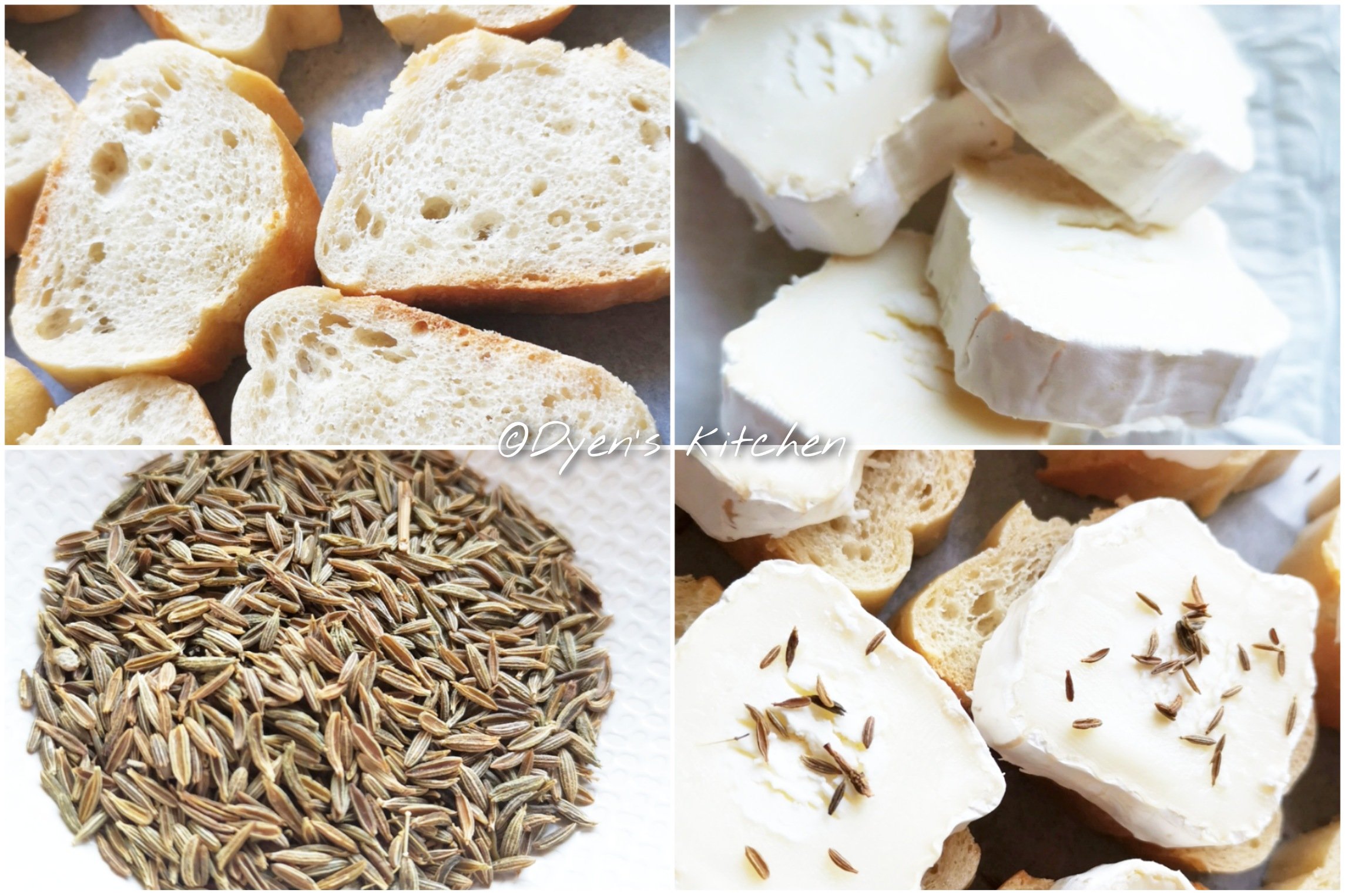1 bûche de fromage de chèvre 200g 1 demie baguette Des grains de cumin