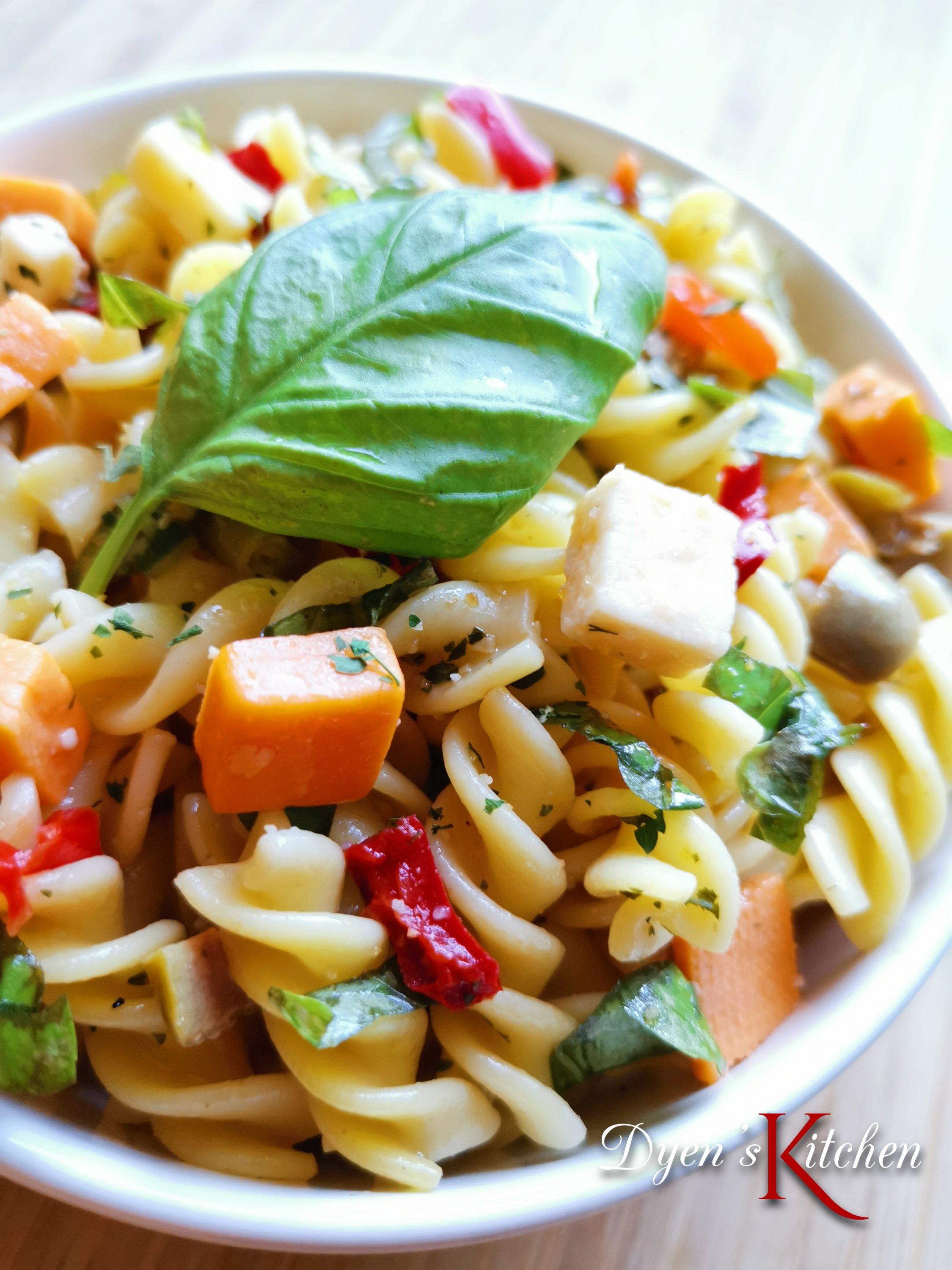 Et voilà, une salade de pâtes qui se termine sur une touche méditerranéenne.
