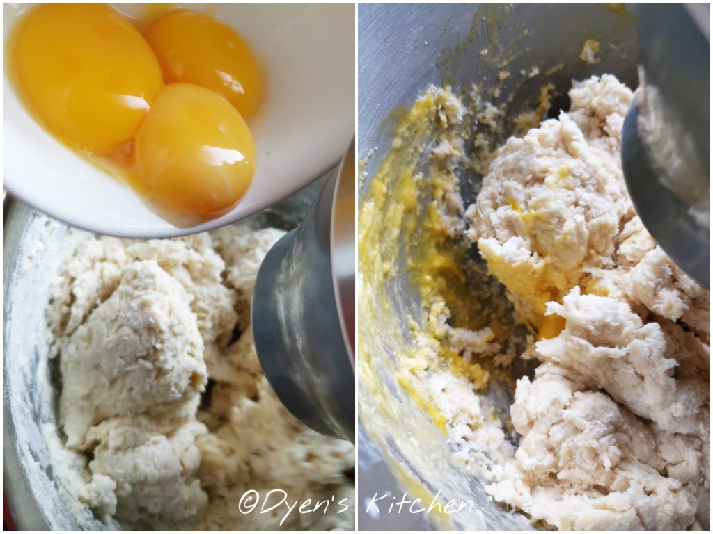 Ajouter les jaunes d’œufs un par un tout en mélangeant.