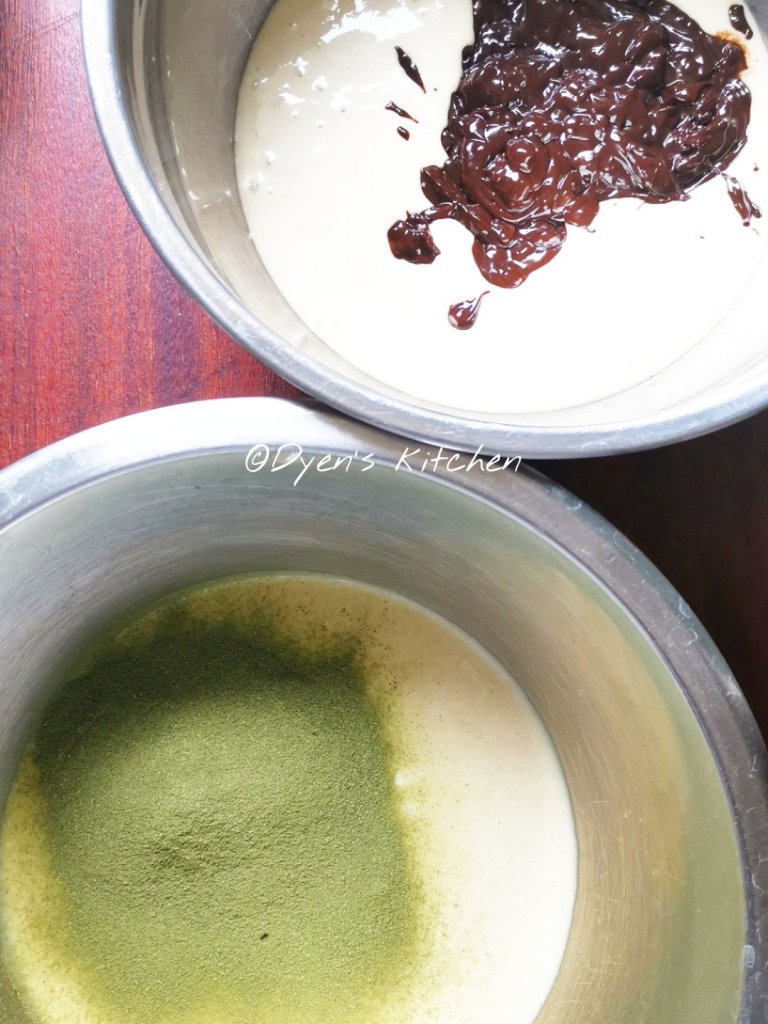 Une fois la pâte bien homogène, diviser la pâte dans deux bols.